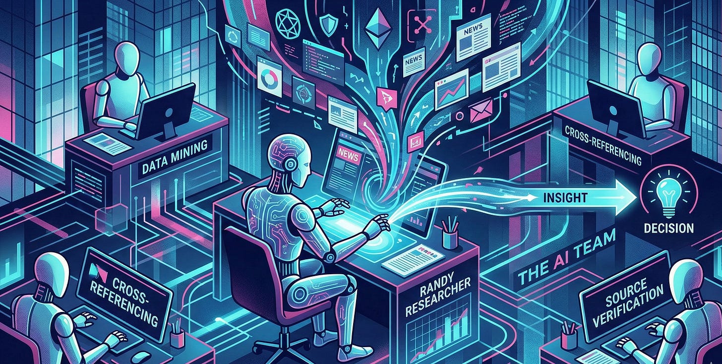 If you’ve made it this far you know that over the past four days we’ve been reading direct first-person points of view from The AI Team on their day-to-day activities running my personal enterprise. Today, in Part 5 of this ongoing series we’re going to hear from Randy who conducts research for me. I created his Skills.md file, so I know what goes into his process, but it’s interesting hearing his take on his job. All text, titles and headers are written by Randy, with no editing by me. Let’s hear what he has to share with us today about efficient research practices…