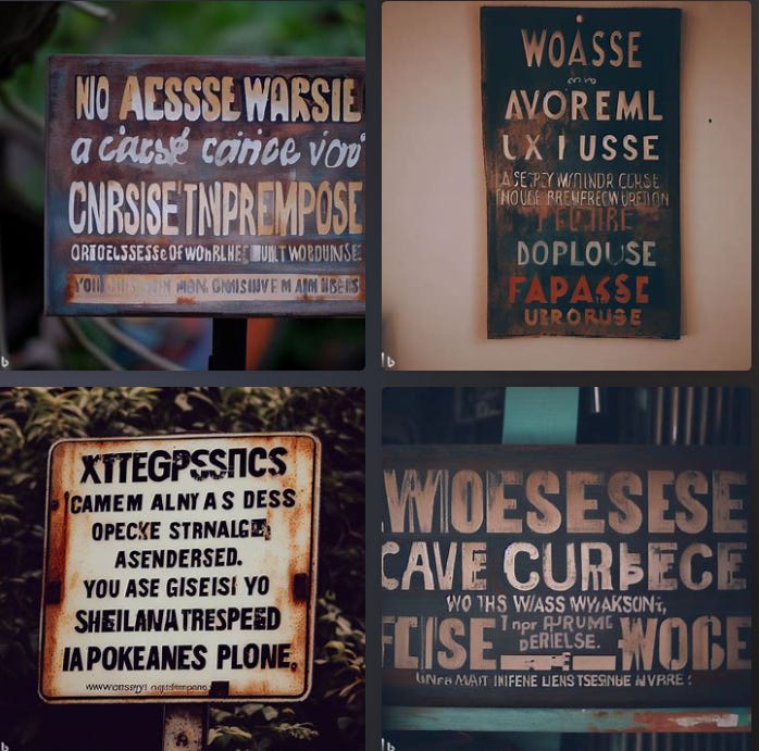 So when I queried Microsoft Image Creator to “create a sign that says ‘Work for a cause, not for applause. Live life to express, not to impress. Don't strive to make your presence noticed, just make your absence felt’” the below image is what it generated…… I’ve been getting pretty good and prompt engineering but getting text out of AI in signs and related just hasn’t been my forte yet.