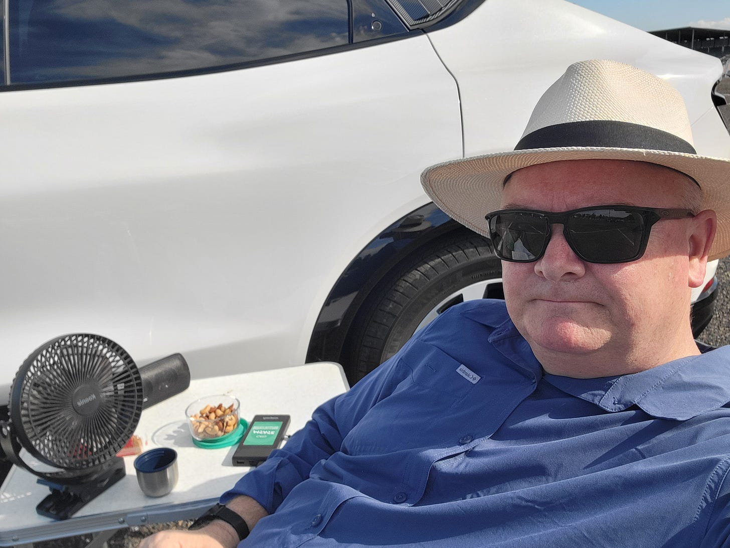 I got up there a little after 330 and set up camp in the parking lot with some good reading material, some snacks and a small thermos of Westward Single Malt Whiskey for good measure to pass the afternoon away while waiting for the concert to start.