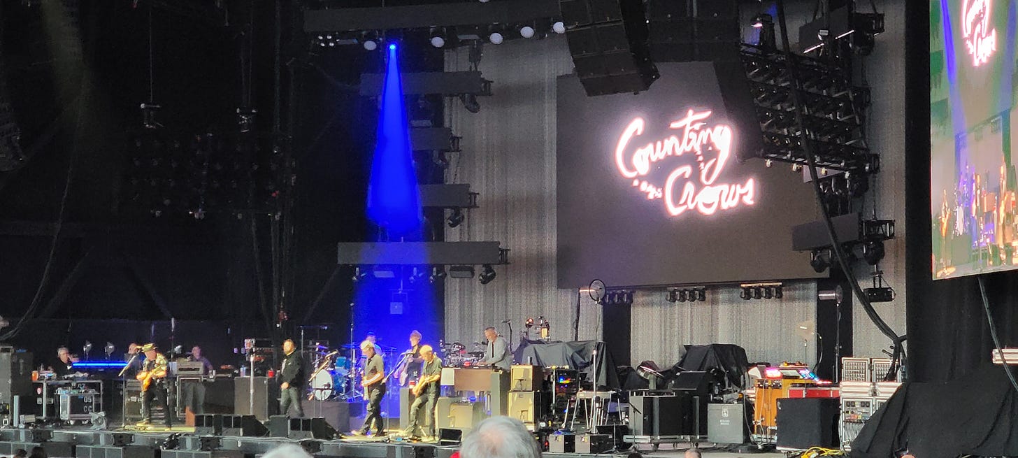 The Counting Crows were up first. However, they didn’t bother to get on stage until 730, 30-minutes late. This was already starting things off on the wrong foot in my book. They sang 17 songs over about an hour or so, and I knew exactly two, Mr. Jones, and Round Here. I wasn’t in the minority though as people sitting around me that had been going to concerts since Woodstock also mentioned they only knew those two songs and at one point people started yelling out, “Play some damn songs we know”. Bottom line they sucked, and I didn’t even bother to save any video of their performance because even those two songs weren’t done well.