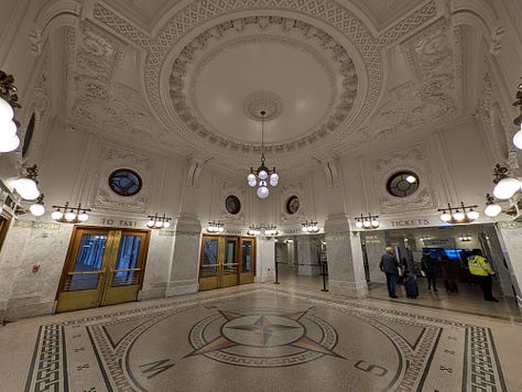 The 118-year-old station was completely remodeled about 10 years ago to its original glory and it is quite the building to observe. It reminds me of the surprisingly younger Grand Central in New York City. I arrived to the station early and spent some time walking around observing the refinished architecture.