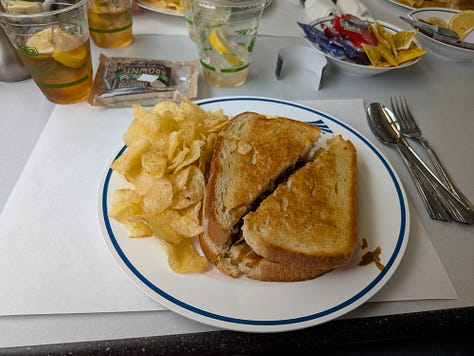 I’ve only ridden in the sleeping car one other time, but I remember during that experience the food was pretty good. This time around I ordered up the Patty Melt and I have to say, it’s one of the best I’ve had. The meat was perfectly cooked, not overdone and dry, the bread was buttered and lightly toasted, but what really stood out and made the sandwich was the perfectly grilled caramelized onions. I was using a fork to grab up every last morsel that dropped to the plate. I’m told by the other riders that dinner consists of steak and other higher end meals with lava cakes and the like for dessert.