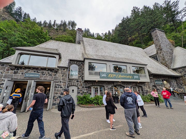 A short drive further brought us to Oregon's most famous natural wonder: Multnomah Falls and Lodge. The Lodge is celebrating its 100th anniversary this year – a true landmark! If you're planning a visit between late May and September 1st, remember to snag a timed-use permit online. At just $2, it's a small price to pay for managing the crowds at Oregon's most visited site. The roar of the falls and the misty spray are always invigorating.