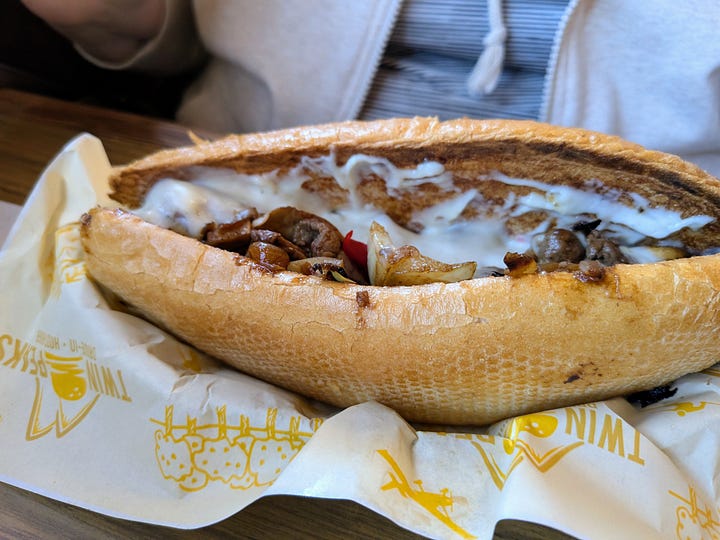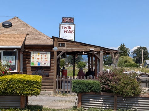After soaking in the Gorge's splendor, we arrived in the charming town of Hood River, where the Hood River meets the Columbia River. Usually, we're just passing through on our way around Mount Hood, but this trip, we had a couple of specific destinations in mind. And when lunchtime hit, there was only one place I had in mind: Twin Peaks Drive-In.