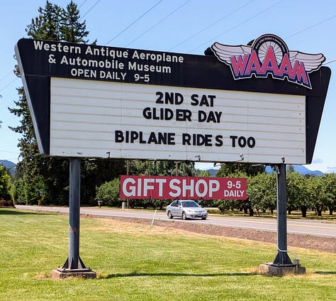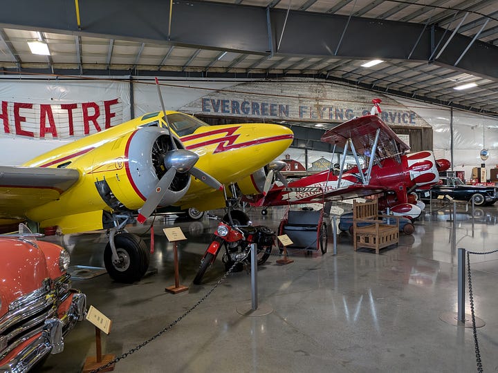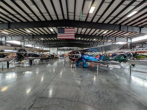 With full bellies, we made the short quarter-mile trip to the Western Antique Aeroplane and Automobile Museum (WAAAM). Prepare to be amazed! This is, hands down, one of the biggest airplane and car museums I've ever seen. Their website boasts “…one of the largest collections of still-flying antique aeroplanes and still-driving antique automobiles in the country.”, and it absolutely lives up to the hype.