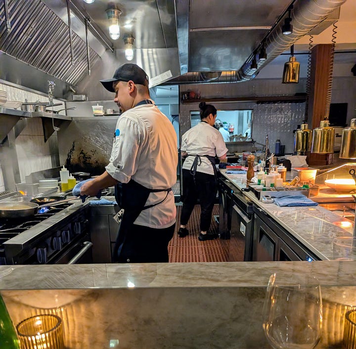 I’ve had my eye on Mucca for a long time. The trouble is, it’s usually packed, and the nights I’ve felt the urge to visit, I never had a reservation. This time I planned ahead and snagged a 7:15 p.m. seat, right at the 5-person chef’s counter.