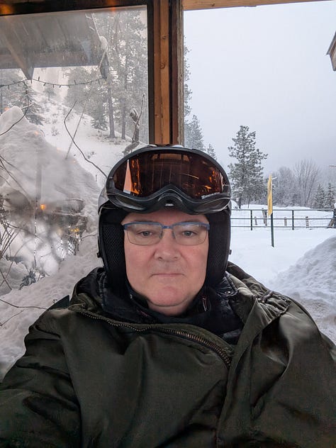 Friday morning entailed an early and quick buffet in the lodge dining room (included with the room) then about a 20-minute drive north of town to Leavenworth Snowmobile Tours where we were scheduled to spend the next 4-hours with our guide, Robin, where he would lead us on the back country trails of the Eagle Creek Sno Park, snowmobiling over groomed trails and 5-feet of fresh new snow. We got all the extra gear we needed that we hadn’t brought along (a couple extra goggles and some snow boot rentals), warmed up in the warming hut, got some last-minute instructions and rules of the road, then headed out. This was my second time snowmobiling and everyone else’s first, so it took about 15-20 minutes to get everyone comfortable and confident with their machines. (Reminder, print out your Sno Park pass before arriving. The Snowmobile shop is next to the Sno Park and luckily, I was able to purchase a parking pass online and they gave me a hardcopy of one of theirs to put in the window after I verified that I had the pass).