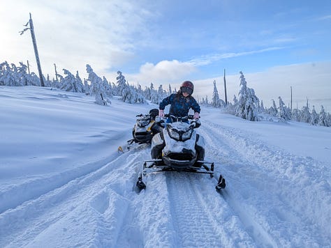 With less than 20 minutes or so left on our 4-hour tour we blazed down the last 6-miles of the trail in a matter of minutes, the snowmobiles leaving giant sprays of snow behind like jet ski rooster tails.