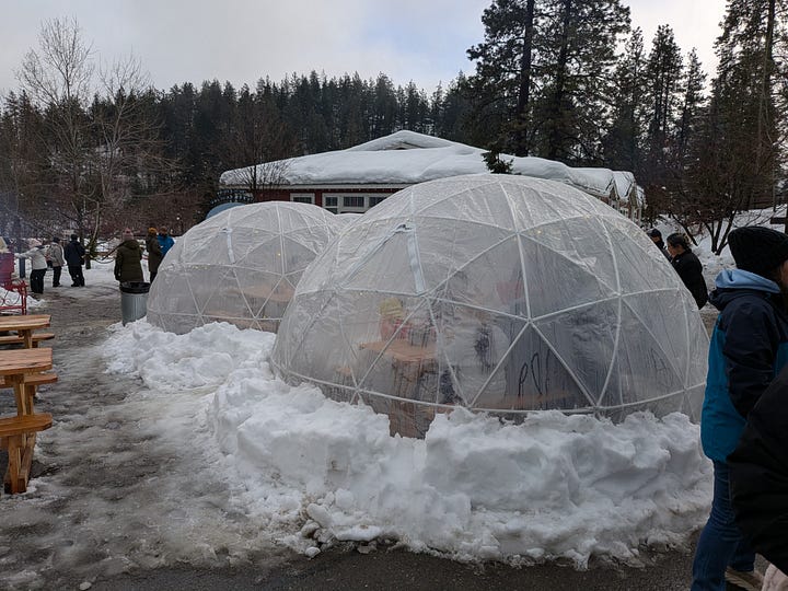While waiting for our tour time we got some of that sausage at their Blitzen Brew coffee stand. They have see-through igloos and fire pits in the waiting area to keep folks busy and of course we couldn’t pass up a chance for a little role play pic.