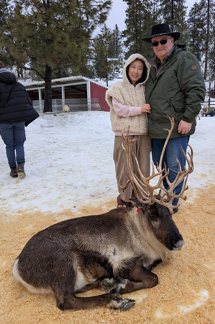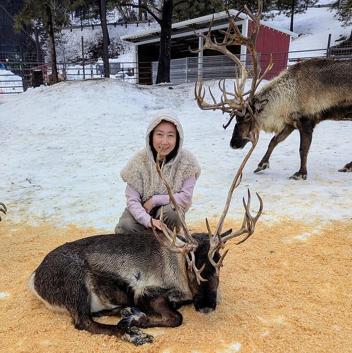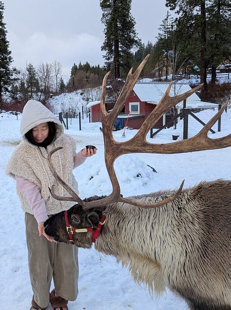 The visit wasn’t timed, but most folks generally hung out with the reindeer for about 15 minutes and could leave on their own. Once all our food had run out, we took a couple more pics ourselves and headed off to capture the memory in other locations on the property.