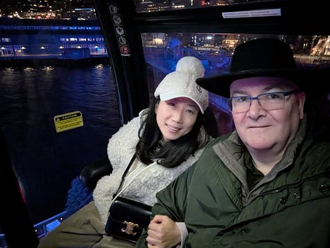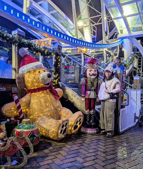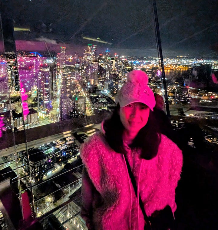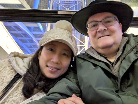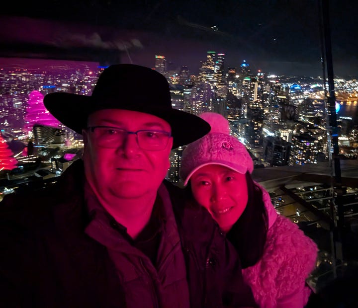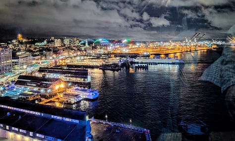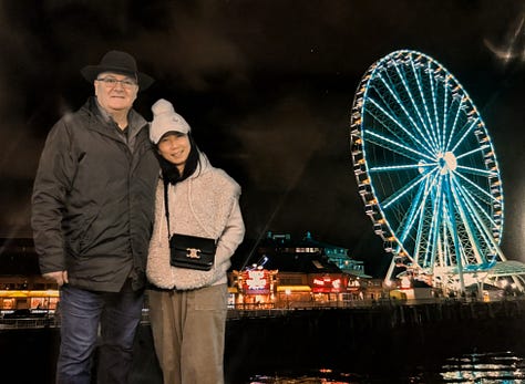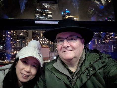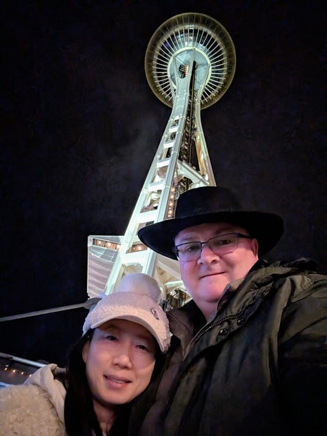 After leaving Leavenworth, we traveled a very rainy and windy 2 1/2 hours west on Highway 90 to Seattle to check in at the Westin in downtown where we were pretty centrally located to several sites we wanted to see (This is a great hotel, and if you are a Bonvoy elite member they really recognize that and take care of you. The manager personally reached out before our stay and arranged for our upgraded waterfront rooms to be next to each other and they have a number of additional benefits like a $10 credit towards Uber, $25 per room credit in the restaurants and more). After dropping off our bags we grabbed an Uber, hit the trail and headed over to The Great Wheel along the waterfront.