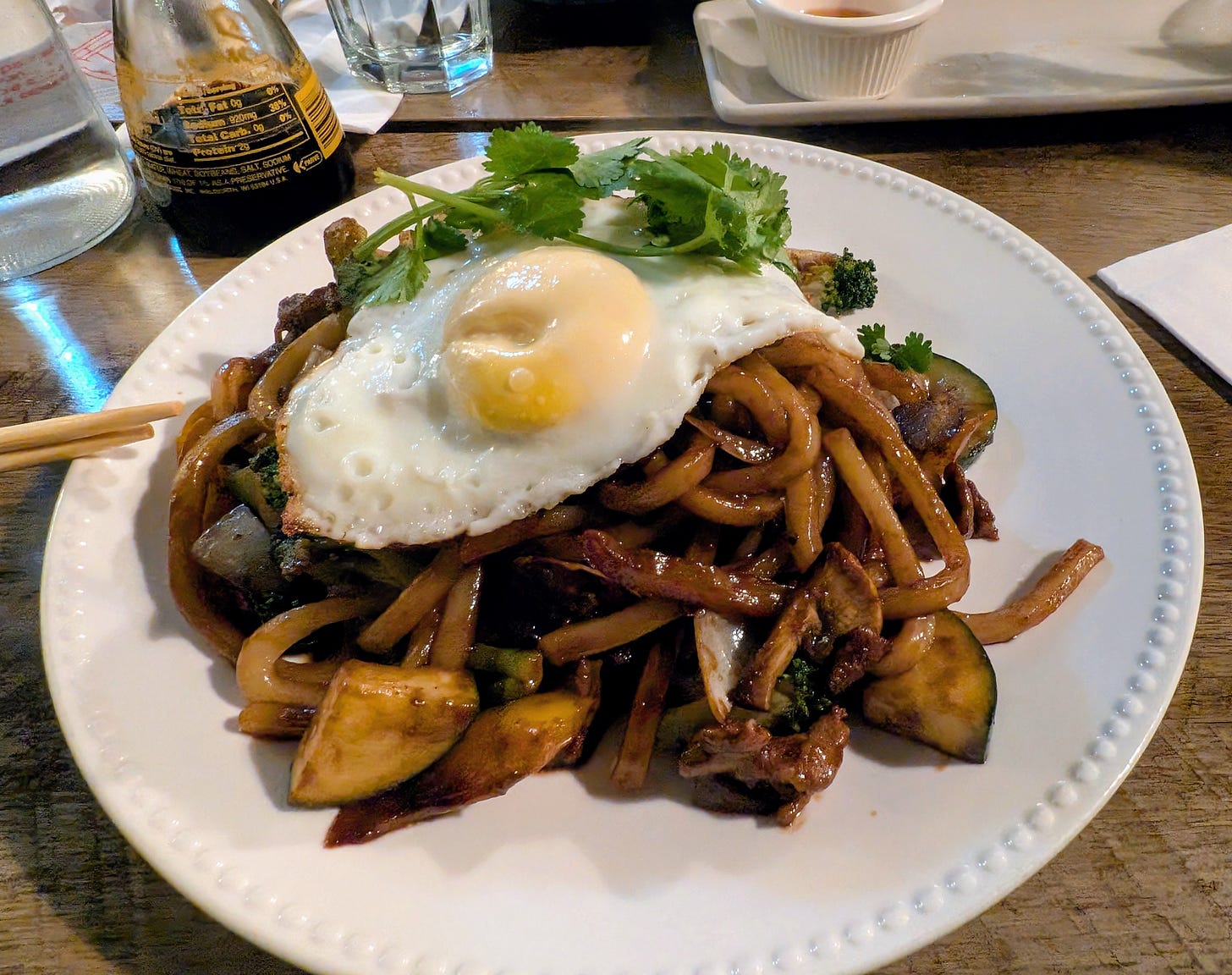 Luckily, we hadn’t eaten first, but it was time, so while our stomachs settled we jumped in another Uber and headed the 10 minutes north to try out the Korean restaurant BlackinGold. I ended up ordering the GoldInBlack Jajang, a Korean-style Chinese dish very popular in Korea and in Korean restaurants here in America. Their unique take on the dish allowed for an upgrade from rice to Udon noodles and I opted in on that. The dish also came with zucchini, sliced brussels sprouts, kabocha squash, diced sauteed white onion, and the whole dish was tossed with a savory black bean sauce and topped with (what was supposed to be) a poached egg (but was really more of an even better sunny side up hard fried egg) and garnished with some cilantro. While not traditional, this was a classic remade that was outstandingly done. I’d definitely go back whenever I’m in the area.