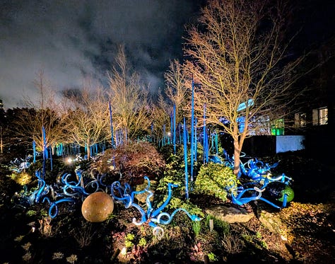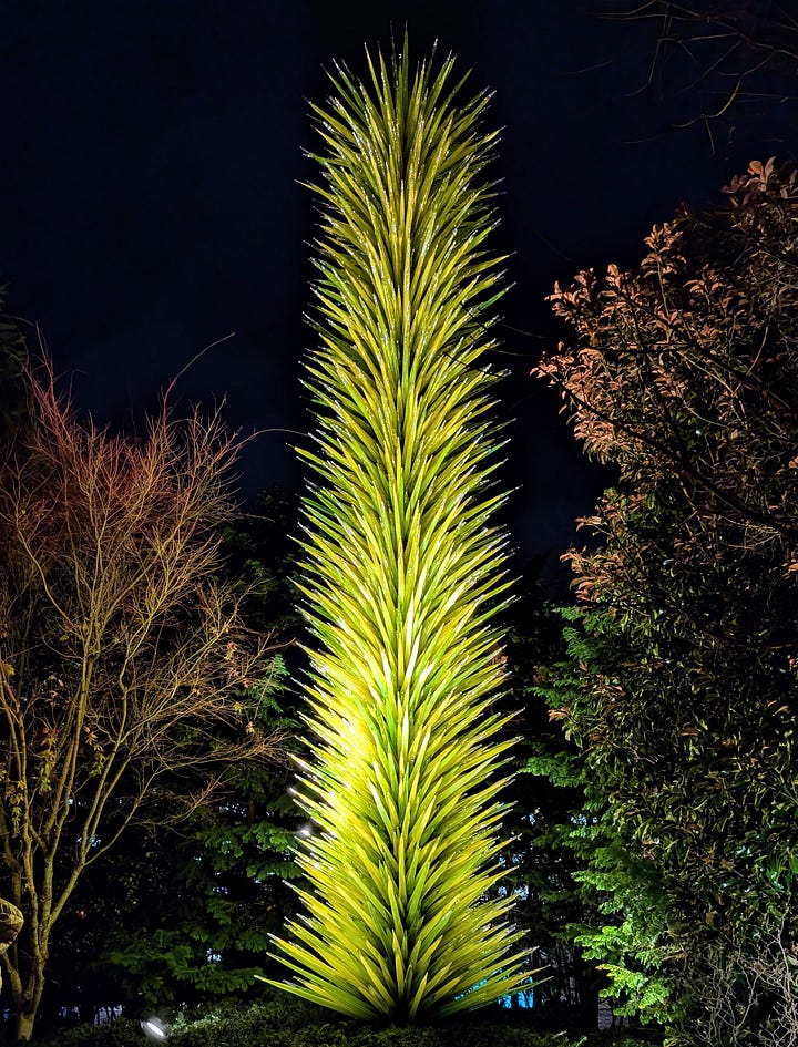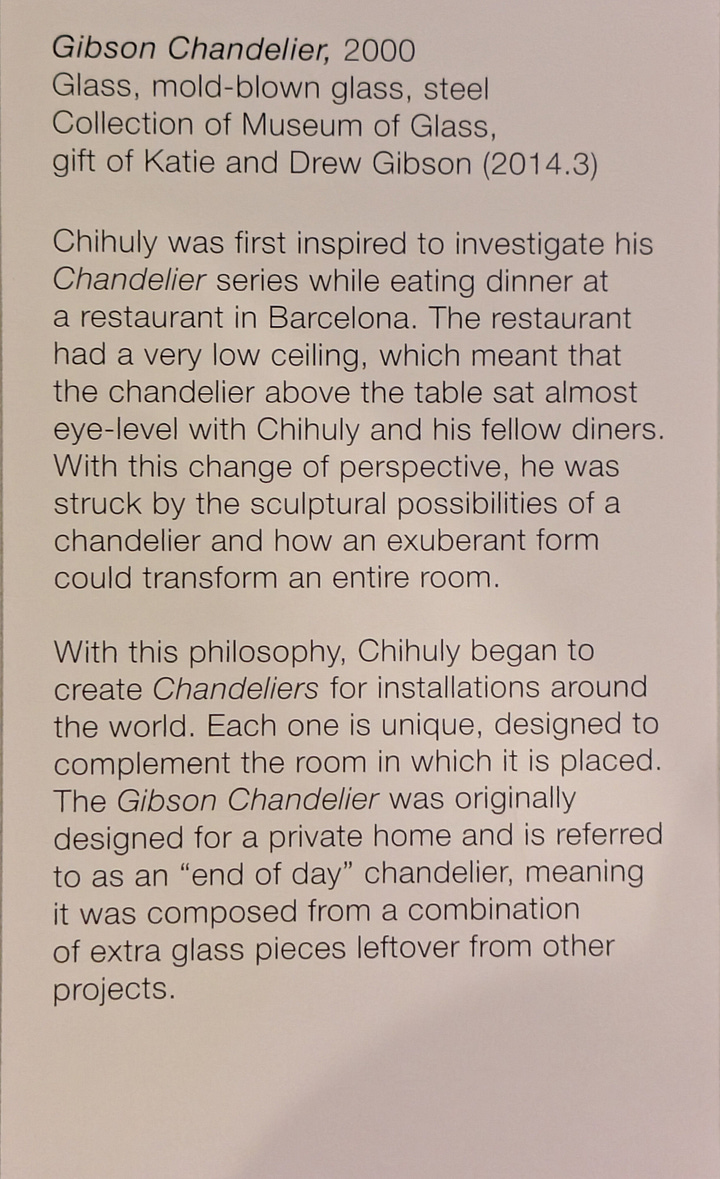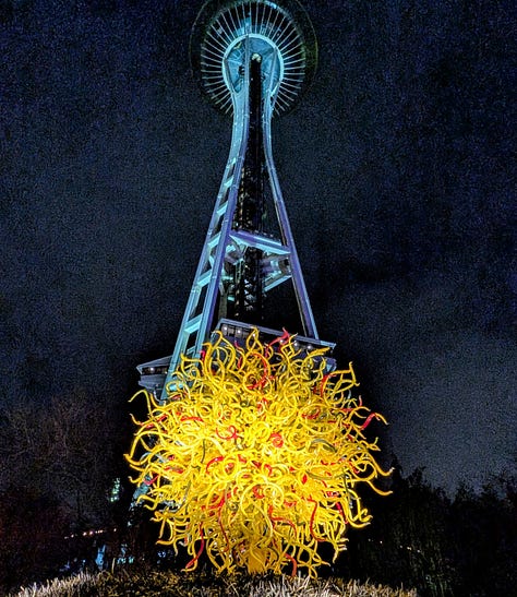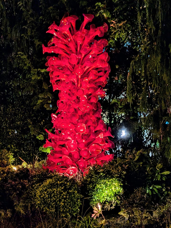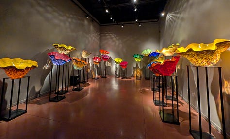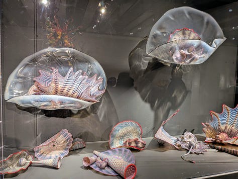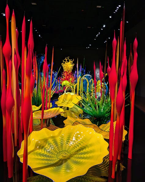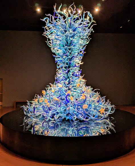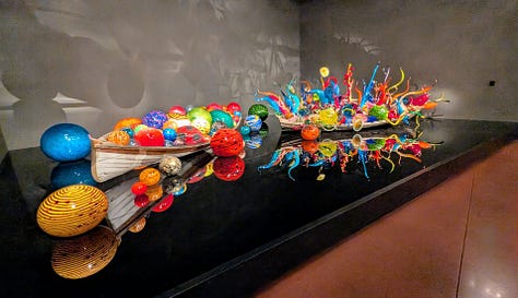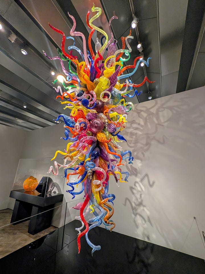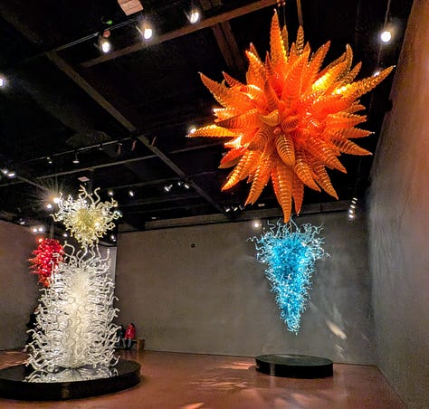 Our next-door neighbors are owners in Bullseye Glass, the glass manufacturing company Dale Chihuly has used to make his pieces. So, in addition to experiencing the incredible beauty of his art up close, we have I suppose a very tangential connection to this place as well.