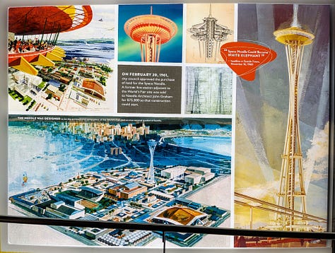 We had an 8pm reservation for the Space Needle Observation Deck and had been working everything else up to that point around that time slot. With our window of opportunity arriving, we walked the 5-minutes over to the Space Needle. Once inside, the line wound around the internal tower past a number of informative pictures and period graphics for about 30-minutes before we were allowed to get on the elevator that took us to the top in about 80-seconds.