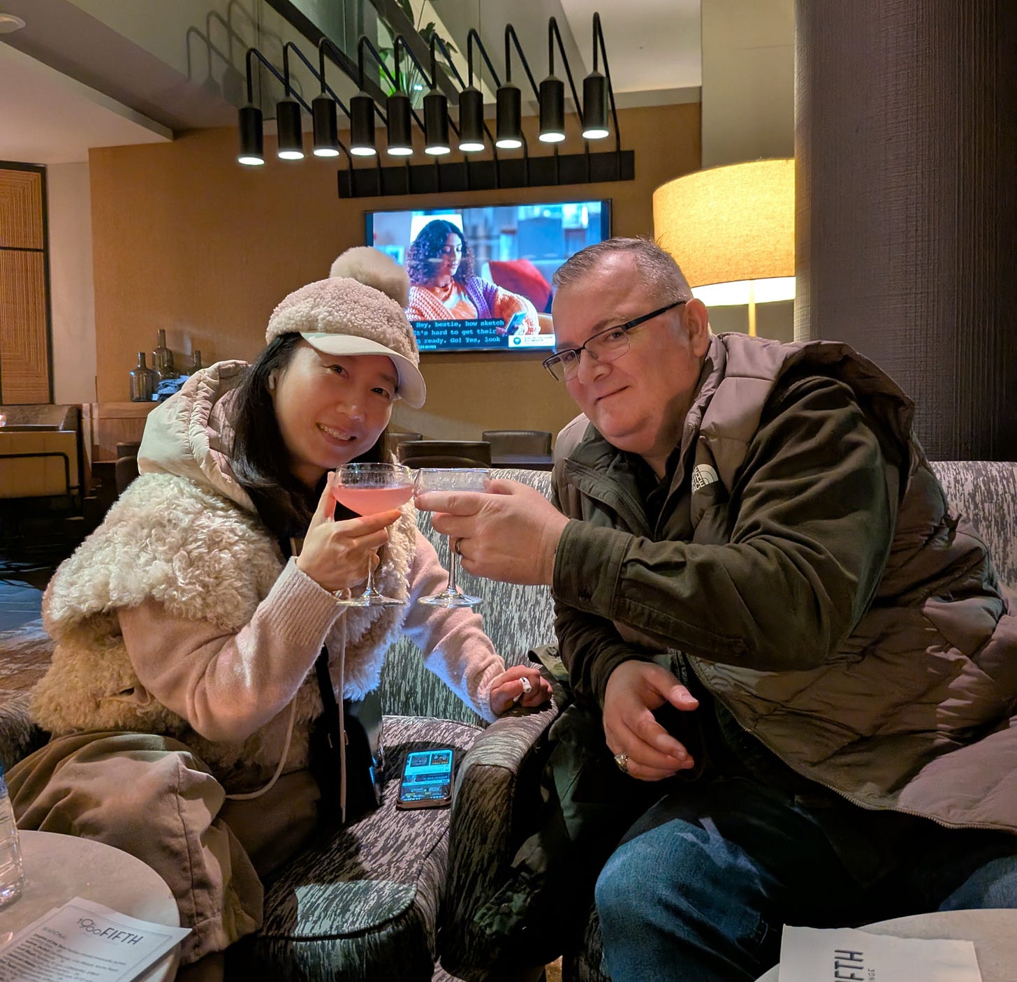 After everyone got a chance to see the sites from the Space Needle, we headed back to the hotel lobby to have a night cap by using up our Bonvoy elite room credits on some Cosmopolitans.