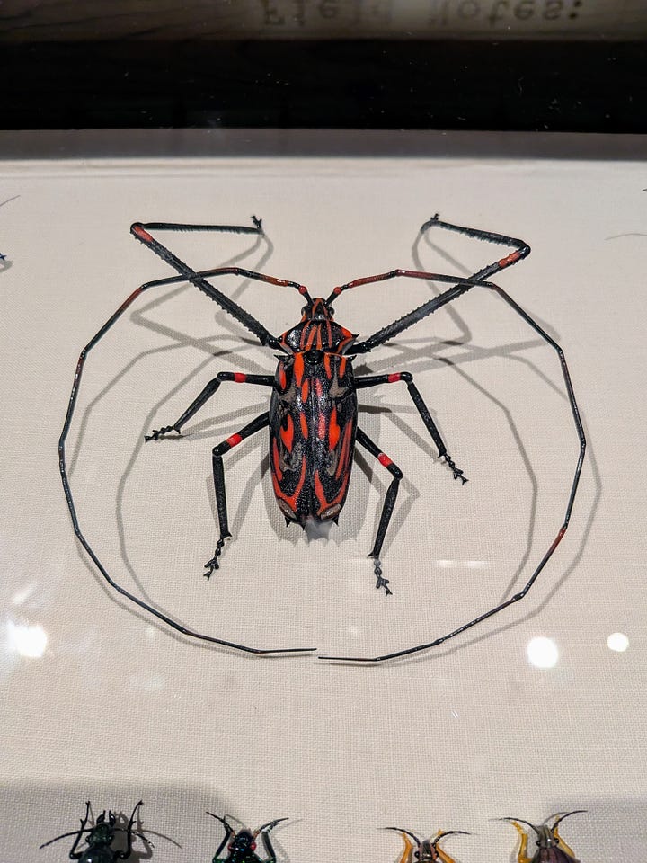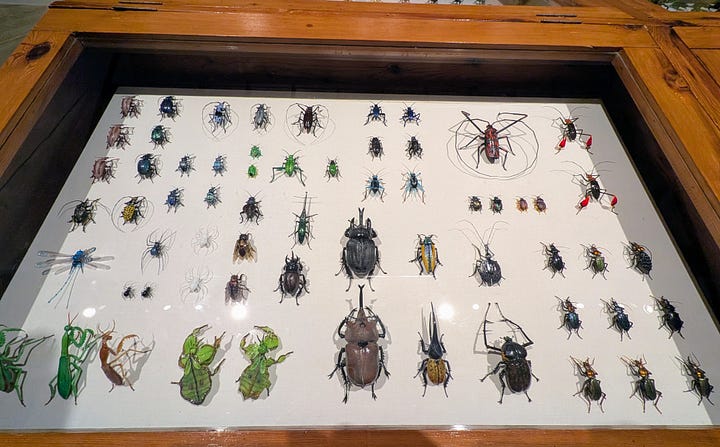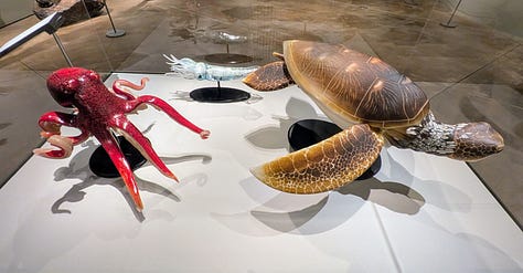 I was especially drawn to the opaque pieces and impressed by the animal likenesses. However, the thing I found most interesting was the wooden display cases filled with glass insects. The fine detail and coloration was most impressive and realistic.