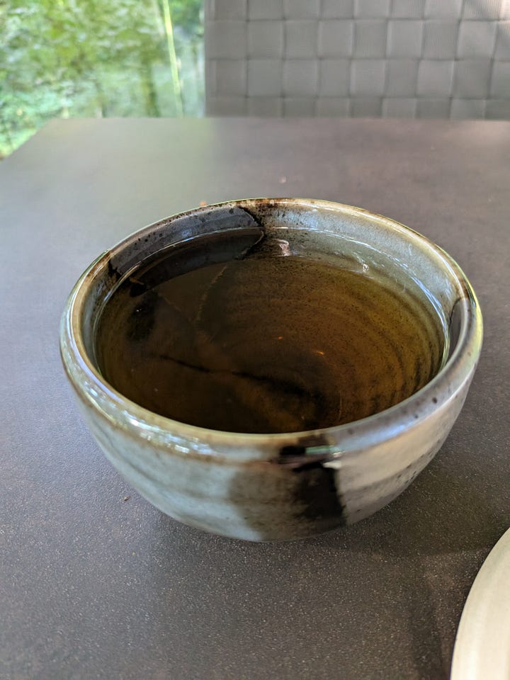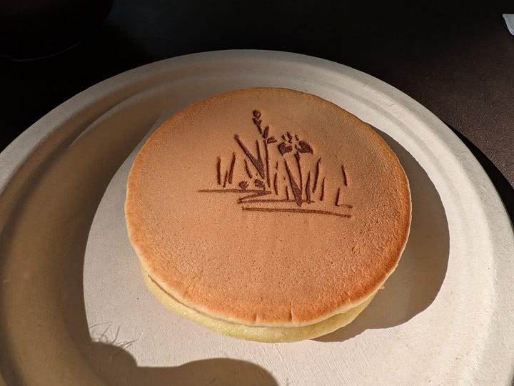 One of my favorite spots is the cozy Umami Cafe. It's the perfect place to enjoy a lovely cup of Hojicha (roasted green tea with rich, malty, and caramel notes, and very low caffeine from Miro Tea), paired with a Dorayaki (two pancakes filled with sweet red bean paste). Savoring this treat while sitting peacefully on the outdoor patio is very Zen, with the morning sun filtering through the surrounding pine trees, their needles rustling from a gentle breeze.
