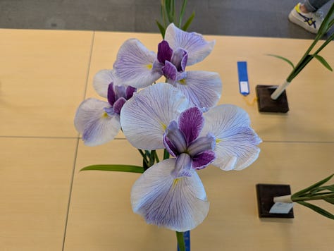 The Garden consistently hosts a variety of cultural shows, from music and food to art. On this particular day, the special exhibition was presented by the American Iris Society. Inside the Japanese Arts Learning Center, there were at least 40 different iris varieties on display, ranging from single cuttings to small arrangements.