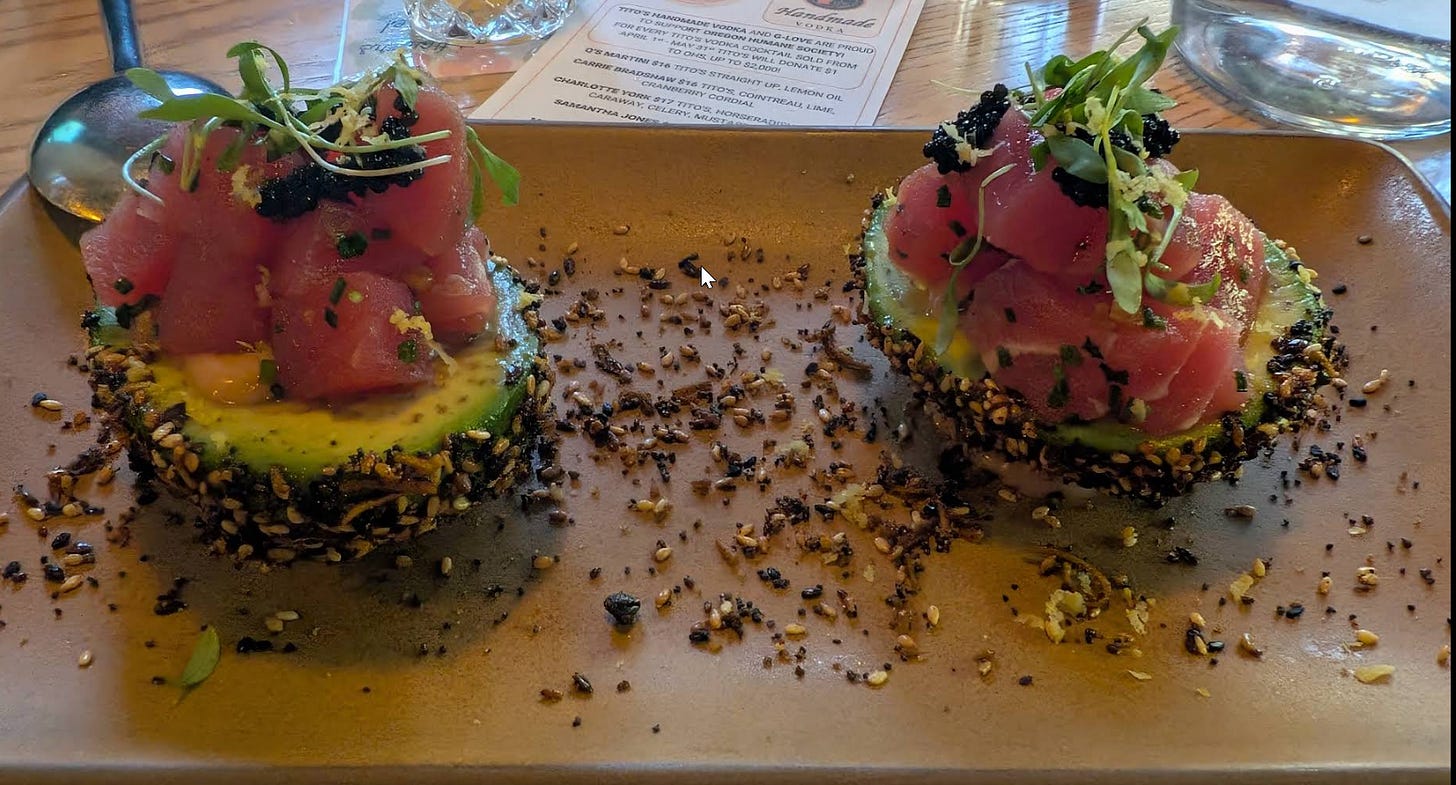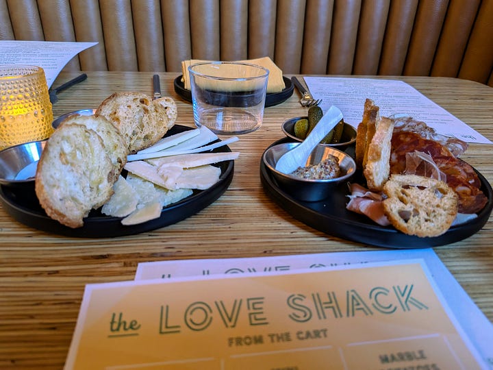 A Spring culinary adventure took us on a delightful two-stop tour in Portland's vibrant Slabtown district. We kicked off the evening with some lively drinks and appetizers at The Love Shack, a cozy spot buzzing with energy. The atmosphere was perfect for catching up with our good friends Marshall and Esther before we ventured next door to G-Love American Kitchen, helmed by the same passionate owner.