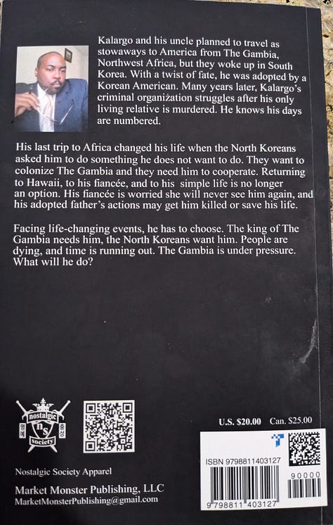 Turns out he was in the US Navy and stationed in South Korea and we talked about that for about five minutes when I asked him if the story was based on any real-world scenarios or total fiction (See the image at bottom right from the back of the book and you’ll see why this was relevant). Having been stationed in South Korea in the US Army as a Korean Linguist and Intelligence Analyst myself, living there for 12 years, I was receptive to the conversation. I don’t normally read a lot of fiction these days, but I thought I’d give it a try and support a fellow Veteran. I figured anyone with enough chutzpah to stand outside an independent bookstore and independently sell your books, keeping all the profit, deserved my attention (and my $20). Apparently, Volume 2 (and I think there is a Vol 3 as well) are already out, so who knows if I’ll enjoy it or not and continue on.