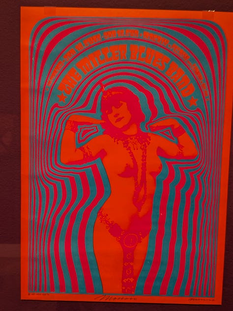 The afternoon was getting on and I had a ticket for the Portland Art Museum’s new Psychedelic Rock Posters and Fashion of the 1960s that opened yesterday and runs through March, so I walked the 10 blocks or so in the other direction.