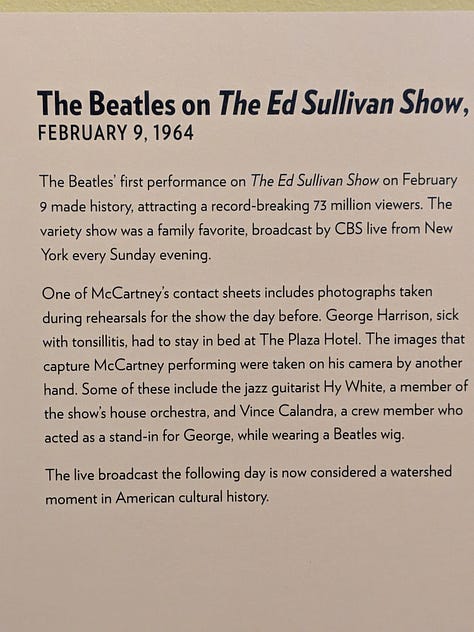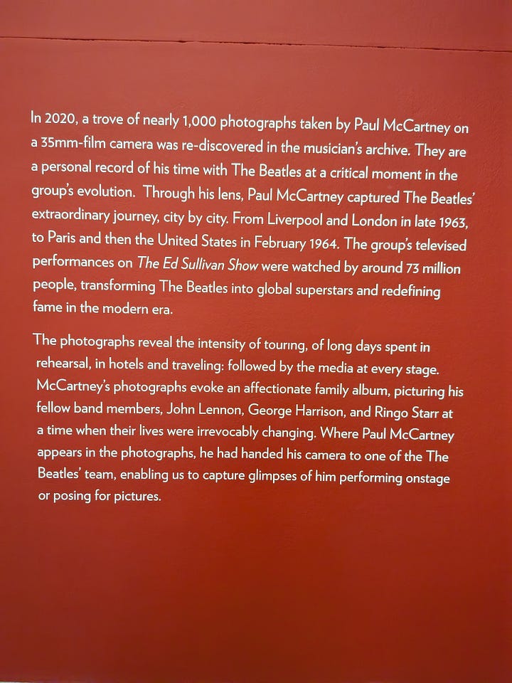 I went to the Museum to see the posters, but I also knew that there was an exhibit on Paul McCartney’s photos as well. I hadn’t previously thought that going to the Museum solely for the photos was enough, but since I was here, I wanted to check out the wing depicting McCartney’s photos capturing the Beattle’s journeys in late ‘63 and early ‘64, to include going on the Ed Sullivan Show on February 9th, 1964.