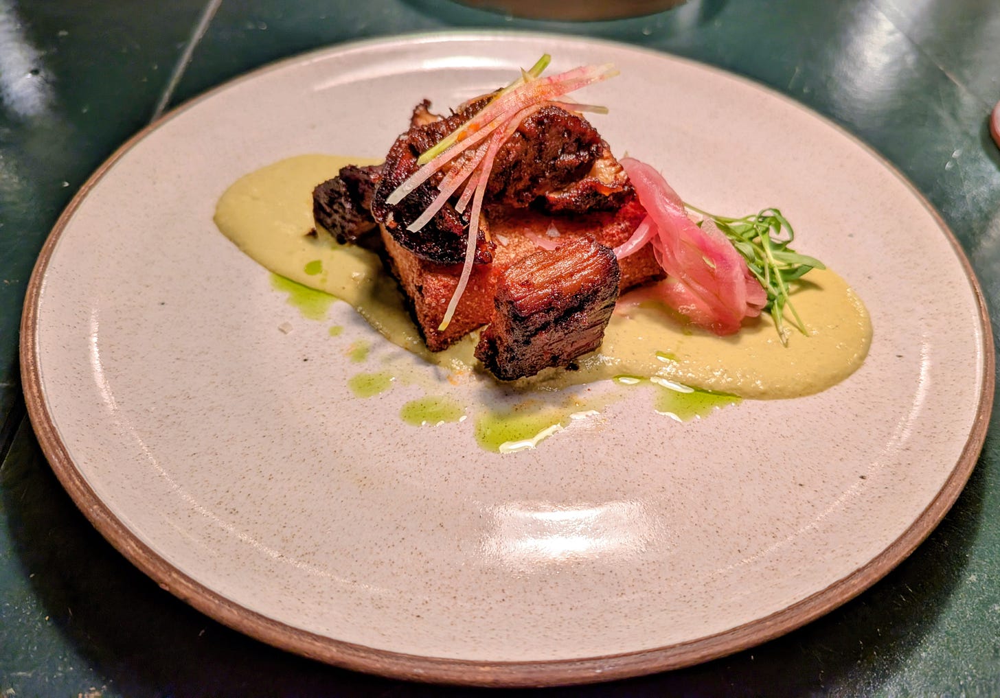 The mole verde was almost like an amped up Green Goddess dressing. Together with the peppers, the crumble and the cilantro ash the whole dish had just the right touch of smoke, texture and acid. If it was possible, this dish was even better than the first and that is a good thing.
