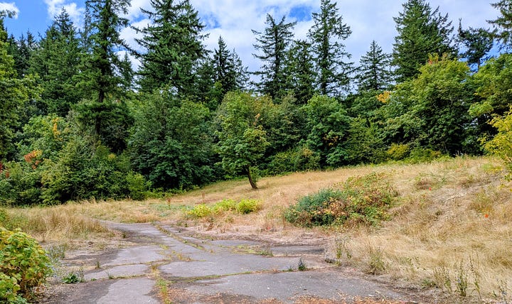 I had no idea at the time, but subsequent research revealed Kelly Butte’s lively past. This site has served as a rock quarry, a jail, a farm for the county hospital, and even a top-secret, bomb-proof civil defense center as Portland government’s command post in the event of a nuclear war.