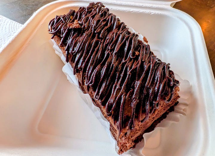 In the small adjacent cafe, I sat down and savored the delicious meal. The cake was a masterpiece of balance. It was slightly bitter, which I love, but a hidden layer of what I believe was apricot jam beneath a chocolate tuille provided the perfect counterpoint of sweetness and moisture. I immediately "starred" this market on my map, a delightful portal to another world I will definitely be visiting again.