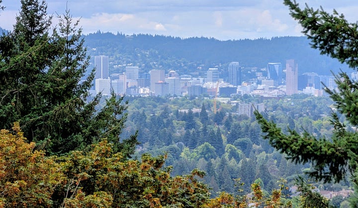 Another fifteen-minute drive northwest, and I arrived at my third destination: the 613-foot Rocky Butte Natural Area. This volcanic cone, just minutes from Portland International Airport, offers what might be the most commanding view of the four.