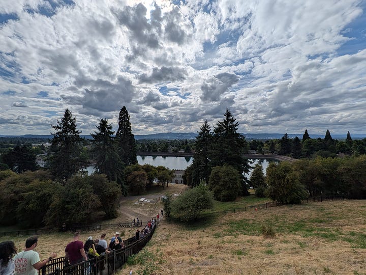 My final peak, a 15-minute drive south, was the 636-foot Mount Tabor. This is arguably Portland's most famous volcanic park, a 191-acre landmark that has housed the city's beautiful open-water reservoirs since the late 1800’s.