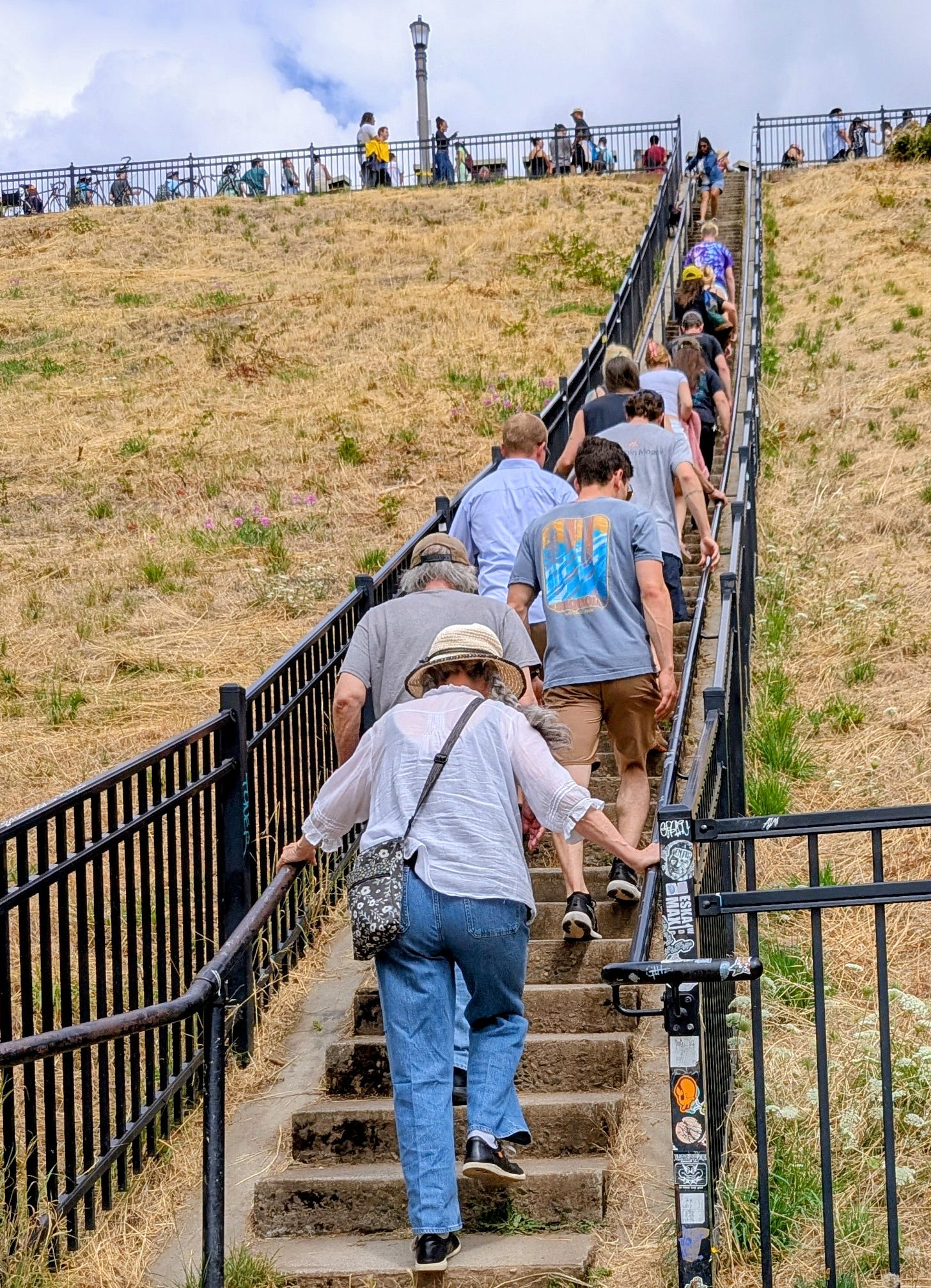 After ascending one of the infamous Mount Tabor Staircases that have quite the following, I found a prime spot right against the safety tape lining the downhill racetrack near the finish line and unfolded my chair to watch the "cars" barrel down the hill.