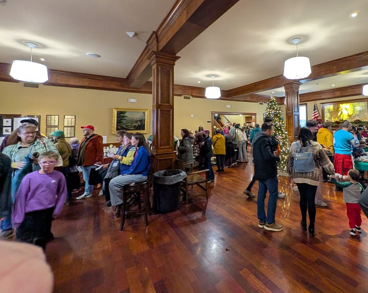 Entry required standing in yet another line, but once inside, visitors could browse holiday vendors, kids could visit Old St. Nick, and the building’s interior had a festive, community feel.