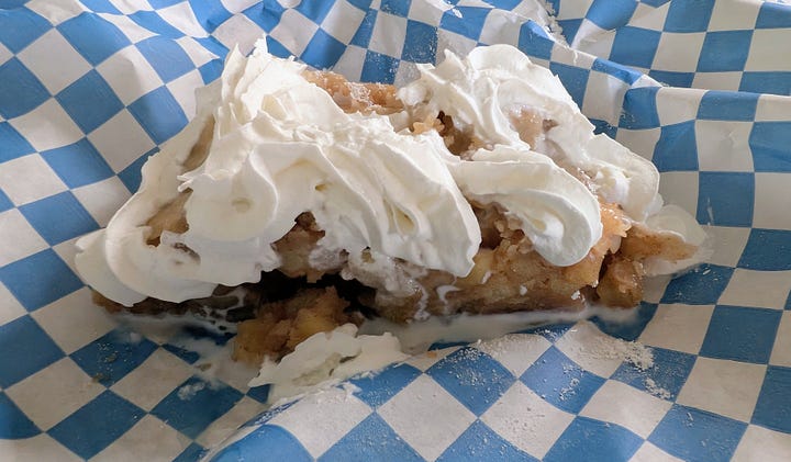 Apple strudel? Decent, though a bit soggy and smothered in fake whipped cream.