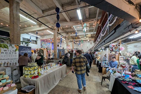 Inside, the market is lively and packed with vendors offering home goods, art, clothing, food, and more. One of my favorite cocktail mixers, Portland Syrups, had a booth, which is always a win.