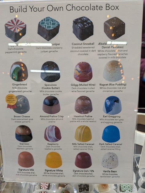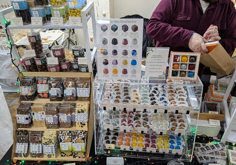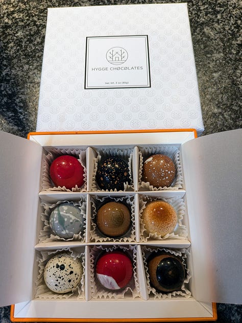 But the standout was Hygge Chocolates, serving absolutely incredible bon bons. I curated a box of nine flavors for myself. See if you can guess which ones made the cut.