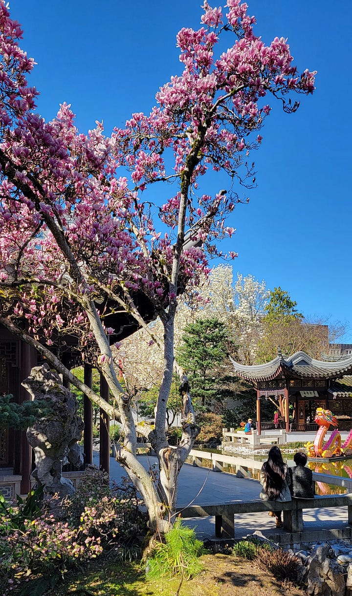 It may have been the fact that the Chinese Garden is downtown instead of in the hills above the city, so it gets more sunlight and warmth, or maybe it was just because there were different plants in both locations, but the Chinese Garden had a lot more examples of flowering bushes and trees than the Japanese Garden this morning.