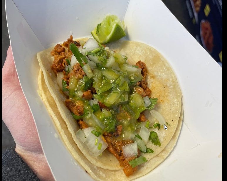 We made our way back through the market and before reaching the car we ran into one of the many food carts in Portland serving up some of the best street food one can consume. El Paraiso is one of those Mexican joints serving up $2.50 street tacos that blow you away. We each got one. I picked the pastor and Kay chose the shrimp taco (I was so enamored with our tacos I didn’t stop to take pics, so these are representative photos from another diner online, and here’s a YouTube link to check out their cart)