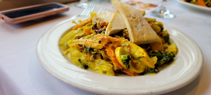 We were provided a menu to select our main course option from and within a few minutes the boat left the dock and we were underway. B3, Tatiana and I all opted for the chicken and Kay got the yellow curry. All felt the food was actually very good.