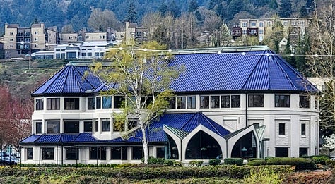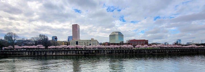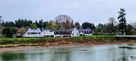 I also knew that the building down the hill from our house on the waterfront with the beautiful blue roof was an Old Spaghetti Factory. What I didn’t know until today was that the first store of this chain was opened in 1969 in Portland and that in 1984 it moved to this location along the river. Equally interesting was the history of the Waverly Country Club, established in 1894 (and supposedly the location where the first Masters green jacket was awarded).