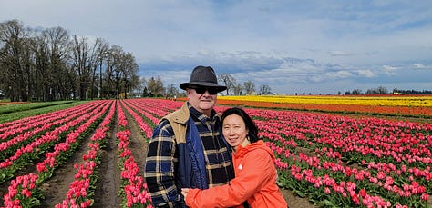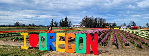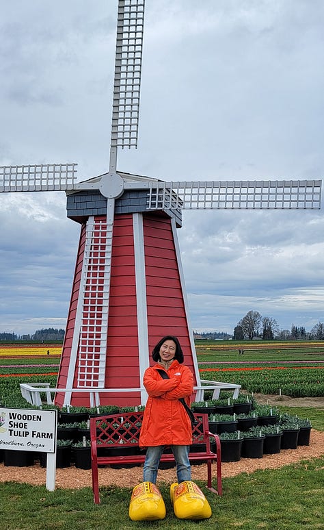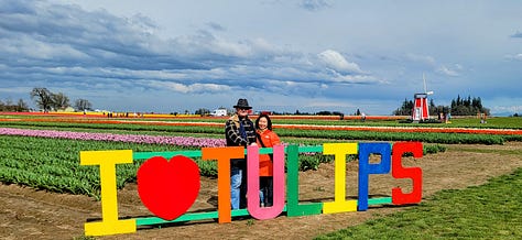 The ride down river and back lasted about two hours total. We had a 3pm reservation slot for entry into the Wooden Shoe Tulip Festival and I knew it would take at least an hour to get to the site, so things were working out well. We made it to the tulip farm with time to spare, but with it being the first day of the festival there were probably only about 50 people meandering through the tulip fields, food trucks and other vendor tents so they let us in early. I fully expect with Spring Break starting next week in the Portland area that this place will be hopping with thousands of people per day.