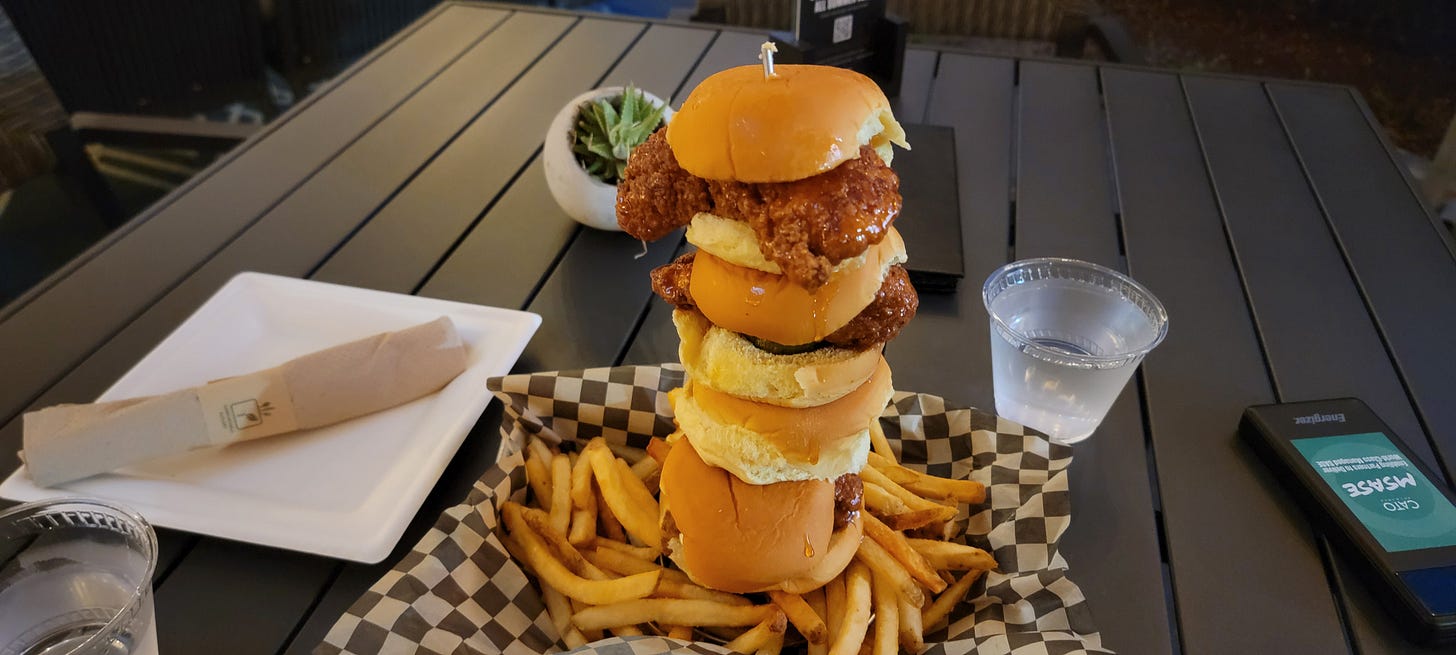 During the intermission I headed back over to the Ilani VIP club, grabbed a drink and tried out their very delicious stack of four hot honey chicken sliders with fries, which was spicy, messy, super delicious and filling for like $15 bucks.