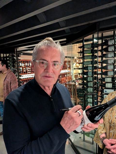 This evening the guest of honor was Kyle MacLachlan, the actor behind some of the most iconic roles in film and television over the past four decades. Agent Dale Cooper in Twin Peaks. Paul Atreides in David Lynch’s Dune. The Mayor of Portland in Portlandia. And currently, Mayor Hank from the post-apocalyptic Fallout series. But Kyle was not here as an actor. He was here in Portland (and more specifically, at Zupan’s) as a winemaker, the founder and proprietor of Pursued by Bear, his Walla Walla winery that has been quietly earning serious recognition for over two decades.