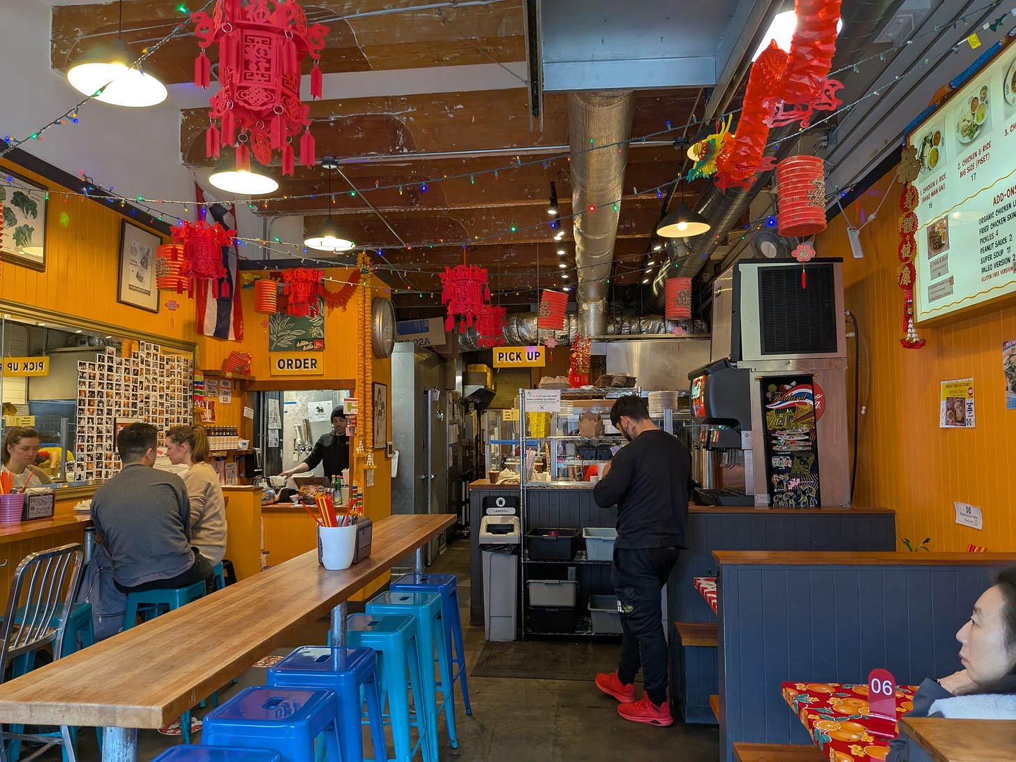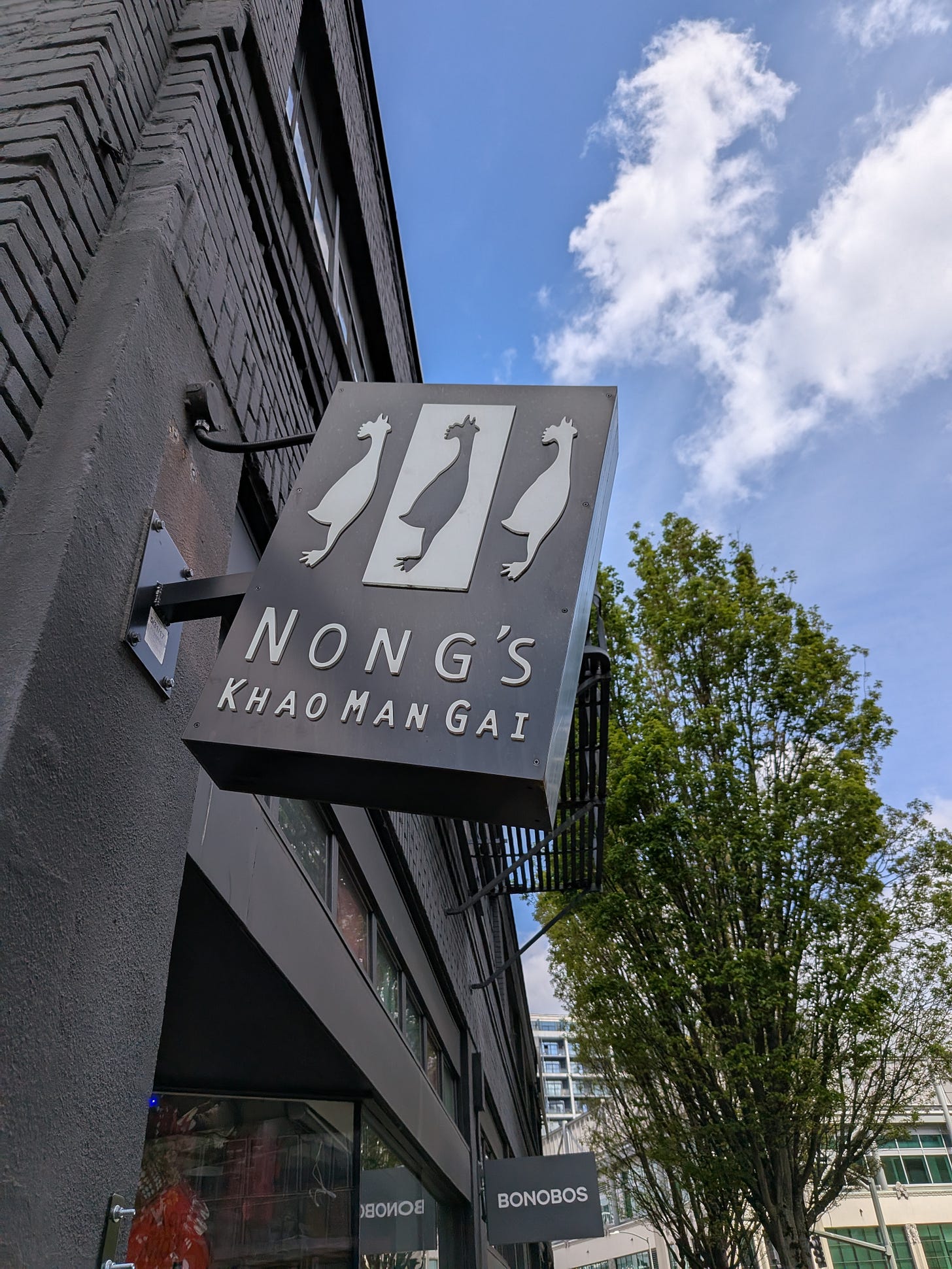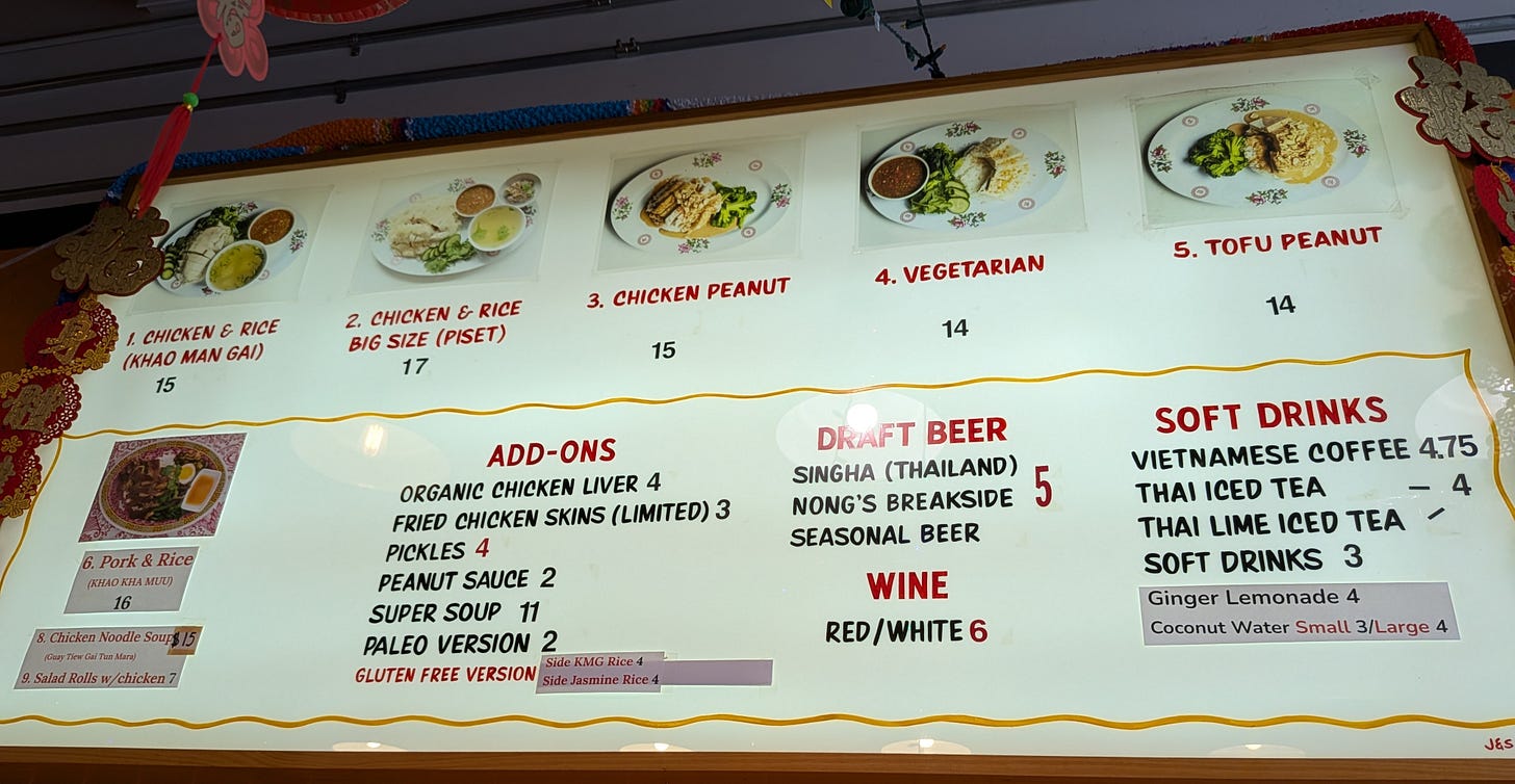 The menu at Nong’s is straightforward and centered on its namesake: chicken and rice (Khao Man Gai). True to its Portland roots, vegetarian options are also thoughtfully included.